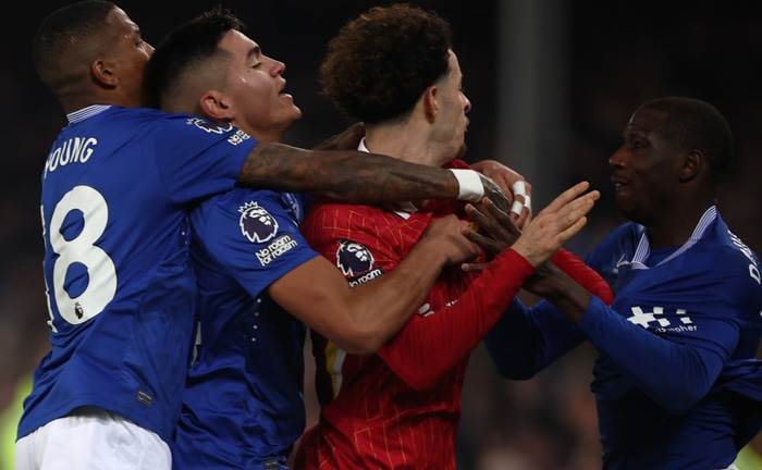 Doucoure var mjög kátur með að liðið hans náði að jafna leikinn í blálokin og fór að stuðningsmönnum Liverpool eftir leik og ögraði þeim. Jones, sem er leikmaður Liverpool, sá það og reif í hann. Upp úr sauð og báðir fengu þeir rautt spjald fyrir atvikið. Jones missir af komandi leik gegn Wolves og Doucoure missir af leik gegn Crystal Palace.