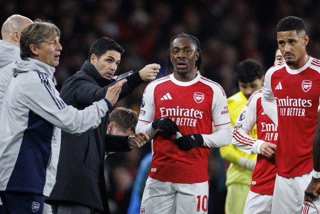 „Þetta var taktísk skipting. Við þurftum á öðruvísi leikmanni að halda, sérstaklega miðað við hvernig þeir voru að pressa og við byrjuðum mjög, mjög vel í seinni hálfleik," sagði Mikel Arteta, stjóri Arsenal, þegar hann var spurður að því af hverju Eze fór af velli í hálfleik í gær.