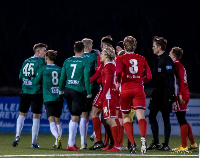 Breiðablik og Haukar gerðu 1-1 jafntefli í Lengjubikarnum í fyrrakvöld en leikið var í miklu roki á Ásvöllum. Hulda Margrét tók þessar myndir á leiknum.