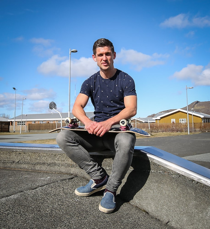 ,,Ég er forfallinn hjólabrettafíkill frá því að ég var yngri. Í 4-8. bekk vorum við alltaf á bretti og ég var orðinn góður þó að ég segi sjálfur frá.''