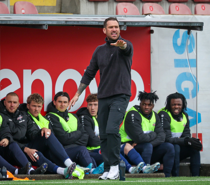 „Við vissum að það væru ákveðnir veikleikar á þeim varnarlega, sérstaklega ef þeir myndu stíga upp í pressu. Þeir gerðu það aðeins í fyrri hálfleik og það voru svæði fyrir okkur að stíga inn í. Mér fannst við leysa það gríðarlega vel en kannski smá ósáttur að við hefðum ekki náð inn tveimur mörkum í fyrri hálfleik, það hefði sett okkur í töluvert þægilegri stöðu," sagði Davíð.
