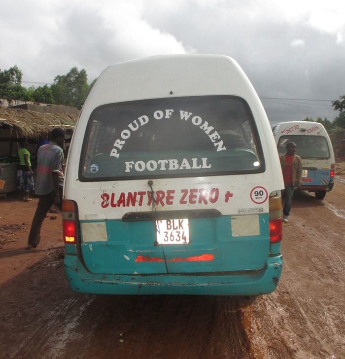 Minibusarnir í Malaví eru oft skemmtilega merktir. Yfirleitt skarta þeir merkjum stórra evrópskra liða en þessi merking var svolítið óvanaleg, sérstaklega þar sem kvennafótbolti er ekki sýnilegur