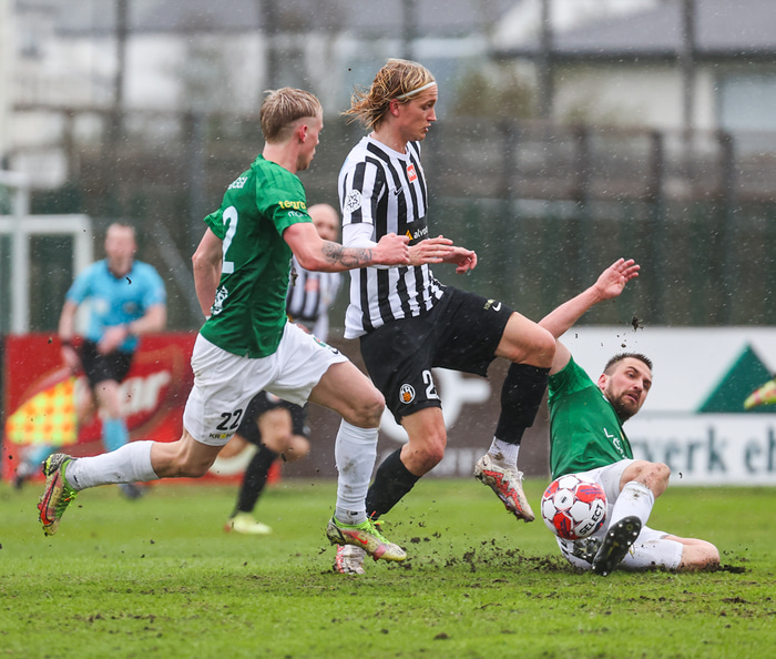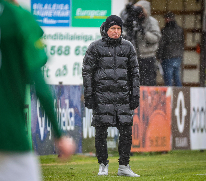 „Nei, veðrið var skárra núna - þó að það hafi rignt mikið, völlurinn var erfiðari. Það er rosalega lítið gras á vellinum, einhvern veginn lélegur allur. Hann var sleipari held ég heldur en úti í Eyjum. Sennilega myndi einhver segja að báðir vellirnir væru ekki boðlegir í efstu deild á Íslandi árið 2023. En þetta er bara það sem við lifum við og mér fannst við ná að láta völlinn stjórna leiknum okkar."