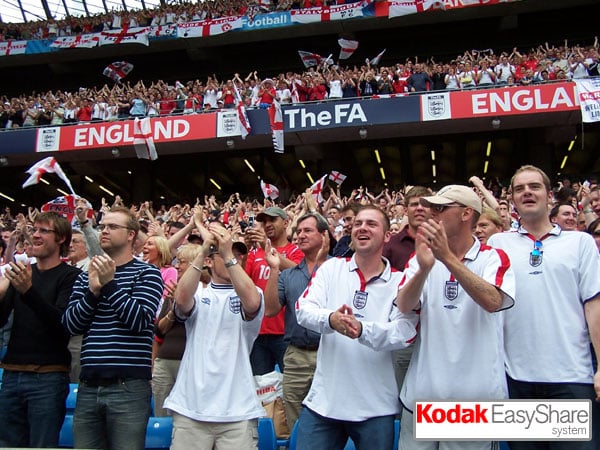Enskir stuðningsmenn bíða eftir leiknum með mikilli eftirvæntingu en barir landsins verða væntanlega vel mannaðir. Hörðustu stuðningsmennirnir voru farnir að mynda biðraðir fyrir utan barina klukkan 7 í morgun.