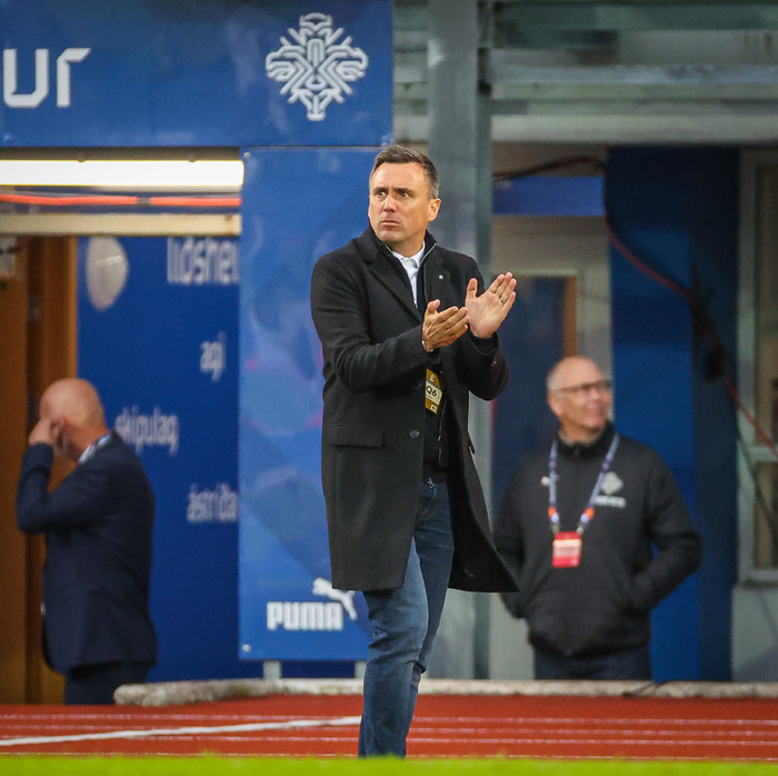 Arnar leitaðist eftir því að ræða við dómara leiksins en fékk ekki að vita hvaða sjónarhorn VAR notaðist við.