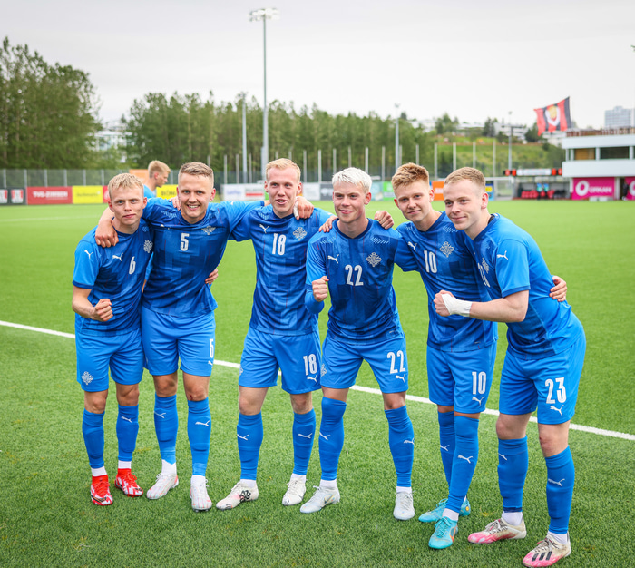 „Fyrst er spilað Ísrael - Albanía og við þurfum fyrst að sjá hvað gerist þar. Ef Albanía hjálpar okkur aðeins þá erum við að fara í úrslitaleik í Albaníu nokkrum dögum seinna. Ég sagði það í gær að það væri erfitt að svara þessu núna því við vitum ekki hvar leikmennirnir verða í september, gætu verið búnir að taka mjög flott skref og verði komnir í A-liðið. Við tökum þetta bara í rólegheitunum þegar líður á sumarið," sagði Arnar.