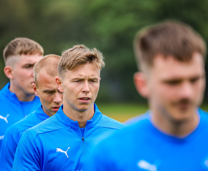 „Já, það er alltaf pínu stress, get alveg viðurkennt það. Svo þegar maður er kominn inn á völlinn þá er þetta bara fótbolti, þó það sé kannski skrítið að segja það. Ég geri þetta í hverri viku þannig að stressið fer fljótt eftir að leikurinn byrjar."