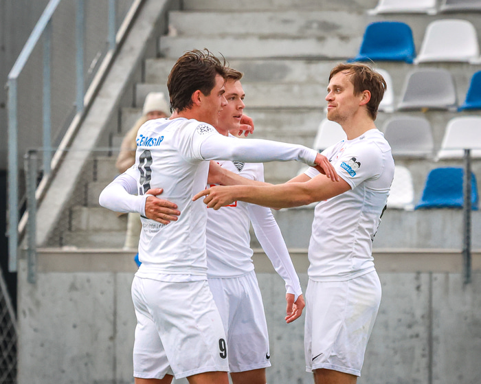 Það var lítið að frétta í síðari hálfleiknum þar til Hermann Þór Ragnarsson gerði endanlega út um viðureignina með marki á 77. mínútu. Hermann skoraði af stuttu færi í autt mark eftir að Rafal Stefán Daníelsson, markvörður Gróttu, missti af fyrirgjöf.
