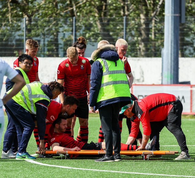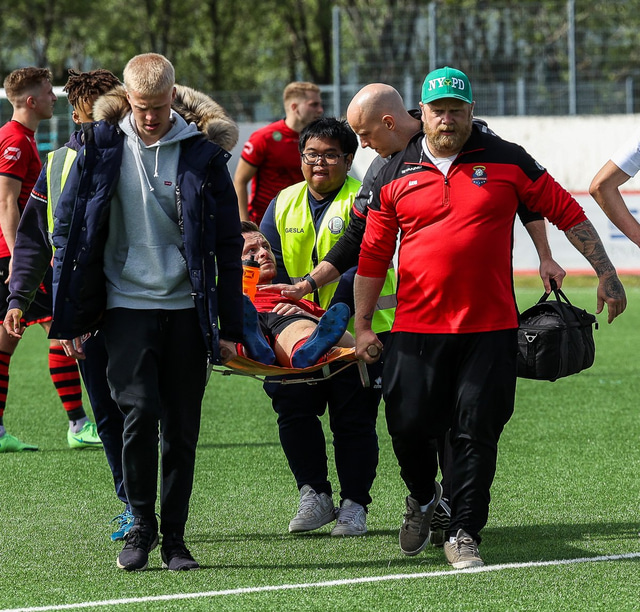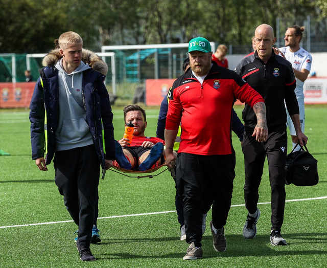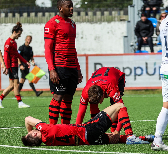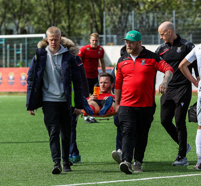 Albert er sóknarmaður og fyrirliði Kórdrengja en hann meiddist í sigurleik gegn Vestra á laugardaginn og var borinn af velli á börum.