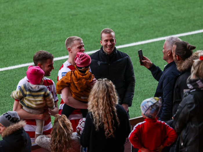 „Bjarni fór í aðgerð á mjöðm fyrir nokkrum vikum og verður ekkert meira með okkur á tímabilinu. En (hann var) frábær í liðstjórninni í dag," sagði Brynjar Björn léttur.