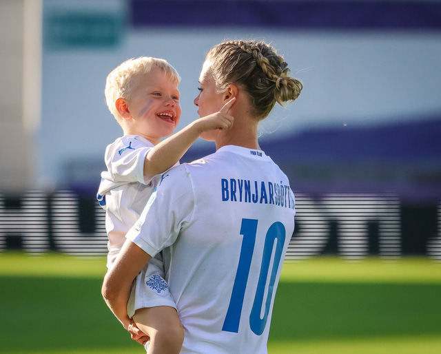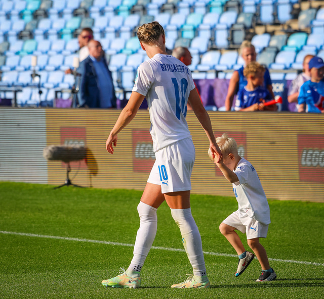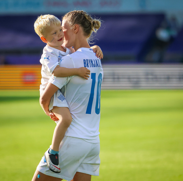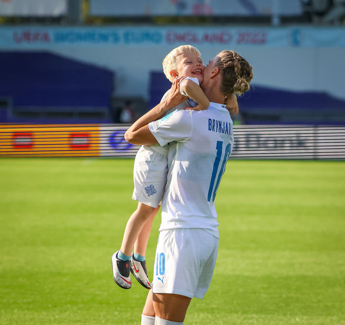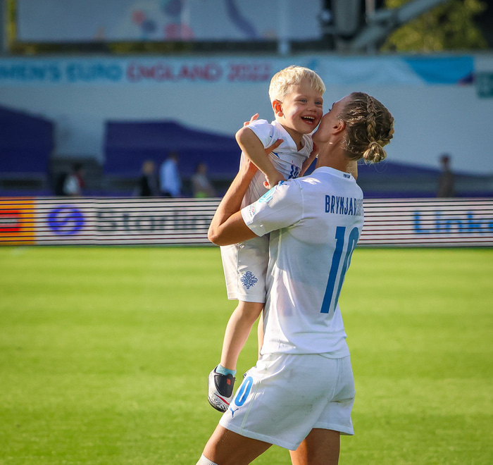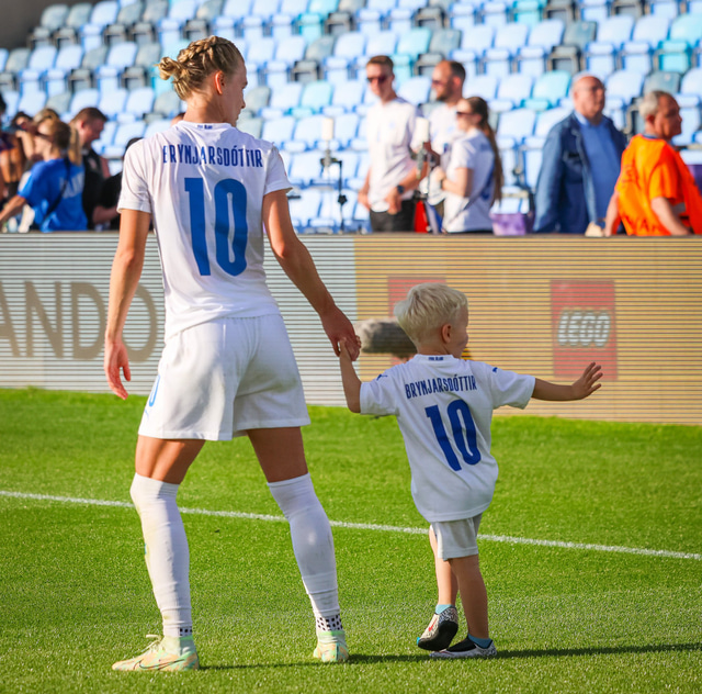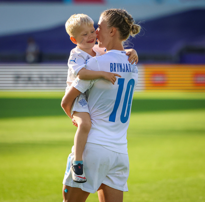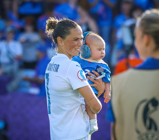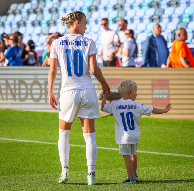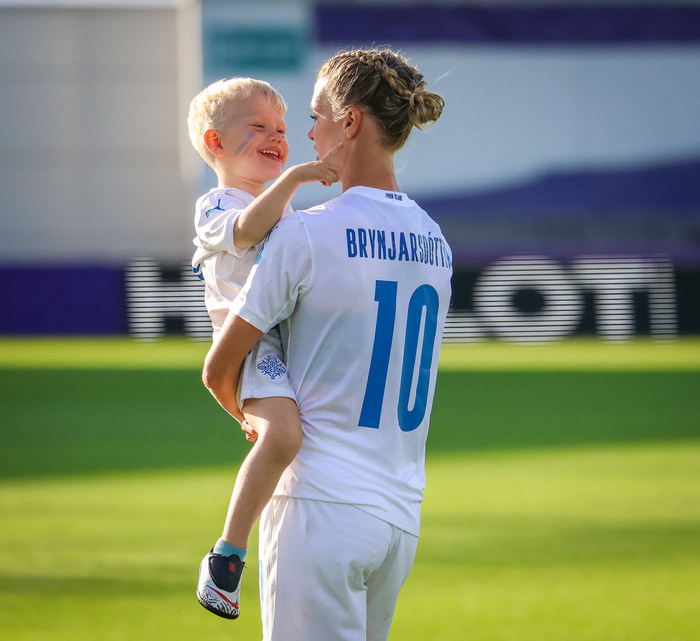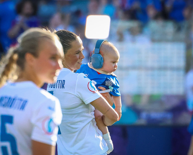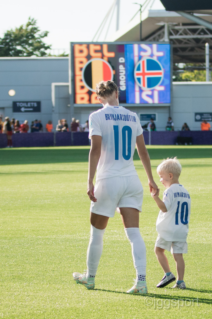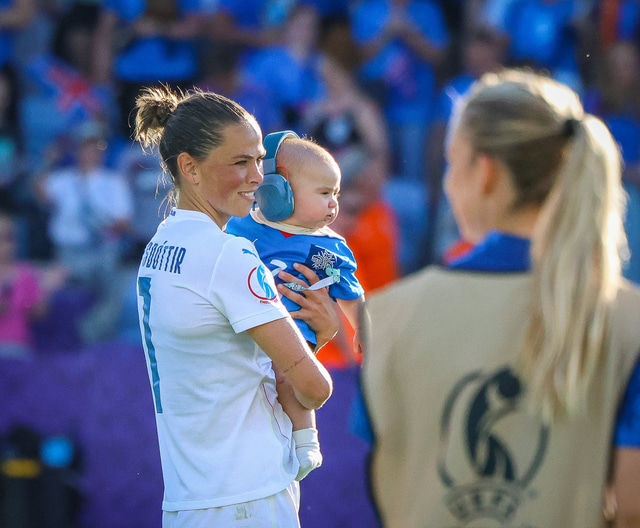 Það var skemmtilegt eftir leikinn gegn Belgíu þegar börn leikmanna fengu að koma inn á völlinn og upplifa mjög skemmtilega stund með mæðrum sínum. Þetta eru minningar sem munu eflaust seint gleymast fyrir stelpurnar okkar; að fá að knúsa börn sín inn á vellinum eftir að hafa spilað fyrir hönd þjóðar sinnar á einhverju stærsta sviði fótboltans - sjálfu Evrópumótinu.