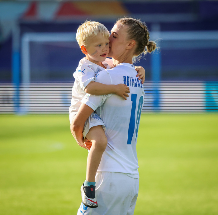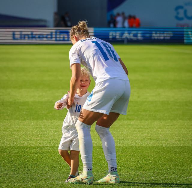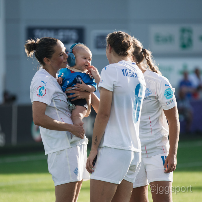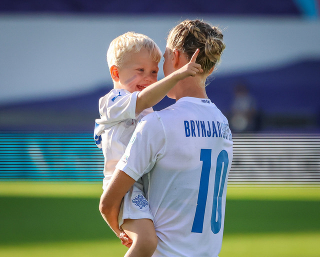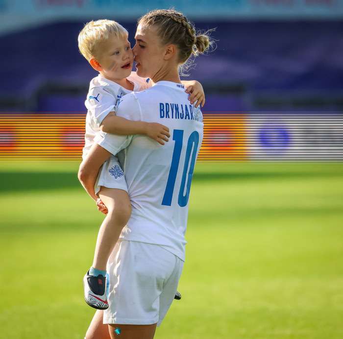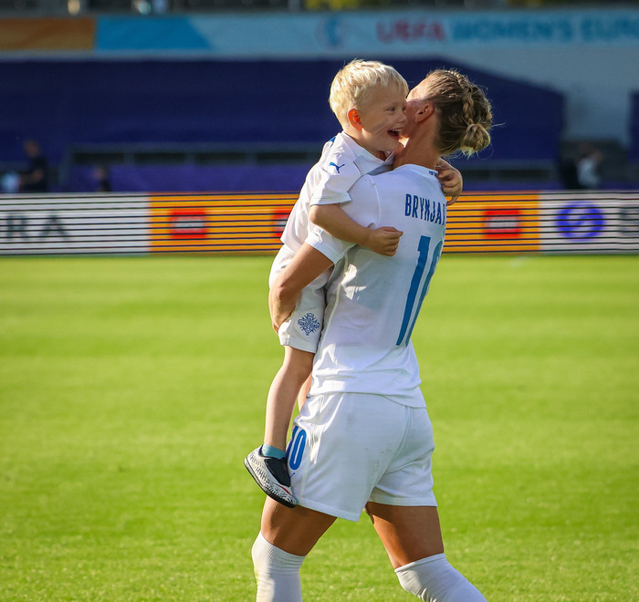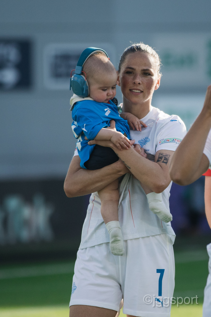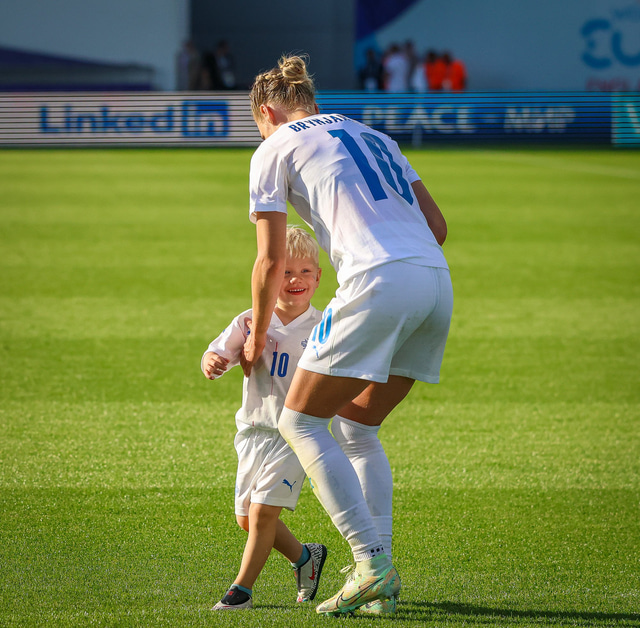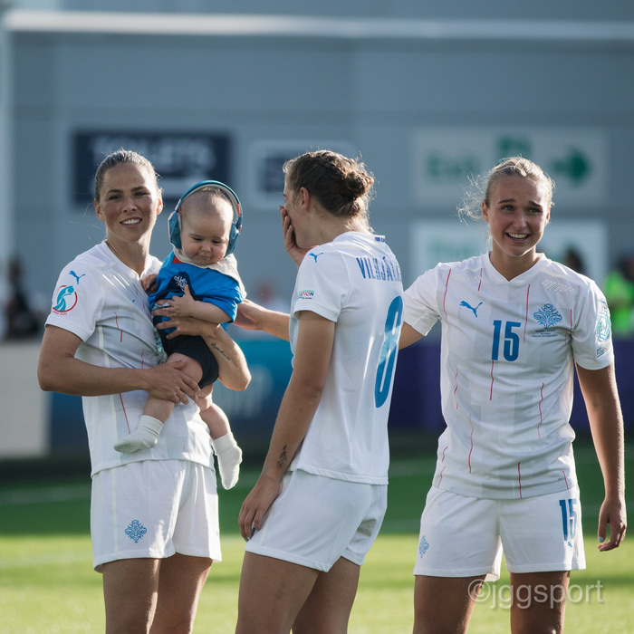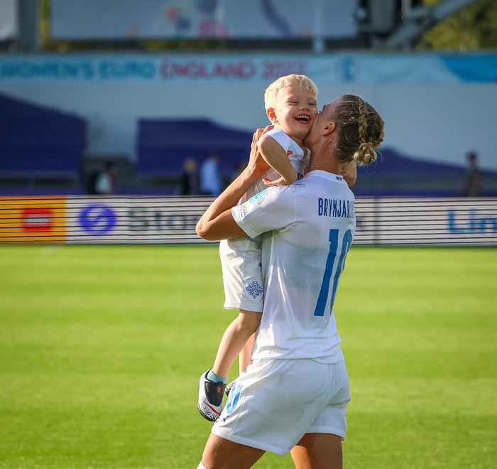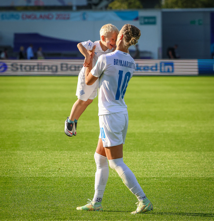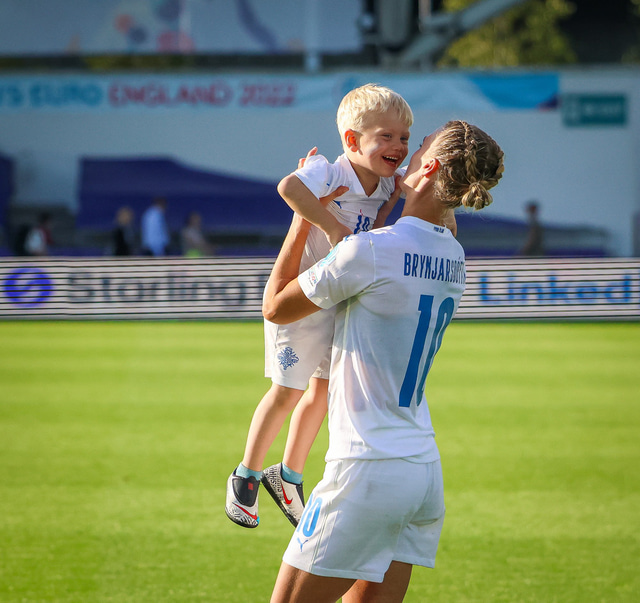 Það var skemmtilegt eftir leikinn gegn Belgíu þegar börn leikmanna fengu að koma inn á völlinn og upplifa mjög skemmtilega stund með mæðrum sínum. Þetta eru minningar sem munu eflaust seint gleymast fyrir stelpurnar okkar; að fá að knúsa börn sín inn á vellinum eftir að hafa spilað fyrir hönd þjóðar sinnar á einhverju stærsta sviði fótboltans - sjálfu Evrópumótinu.