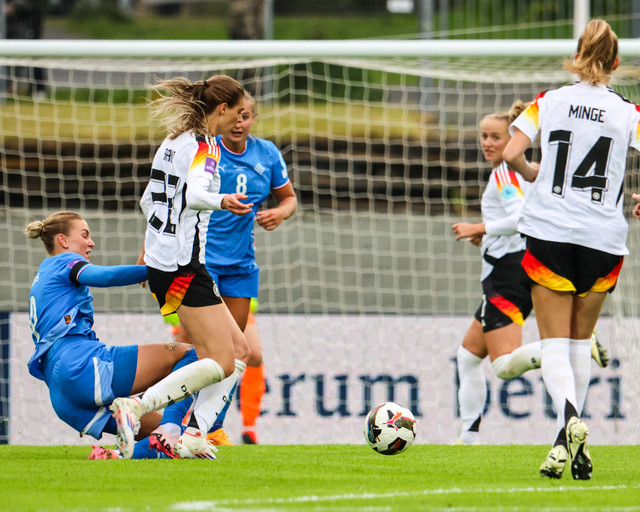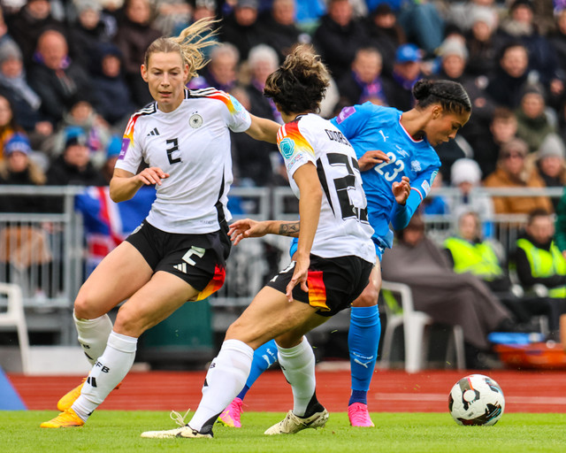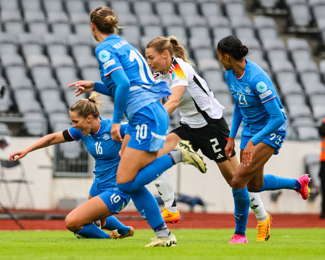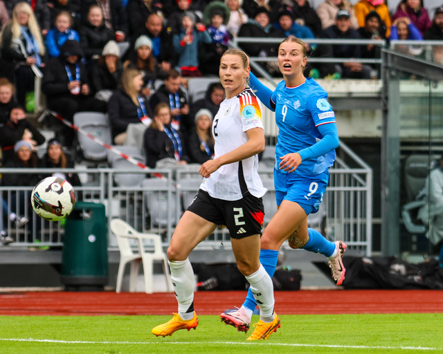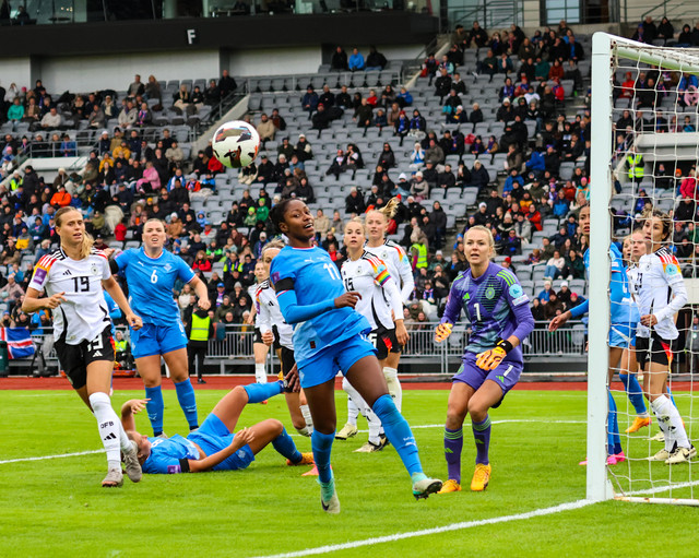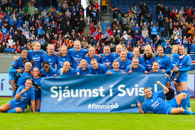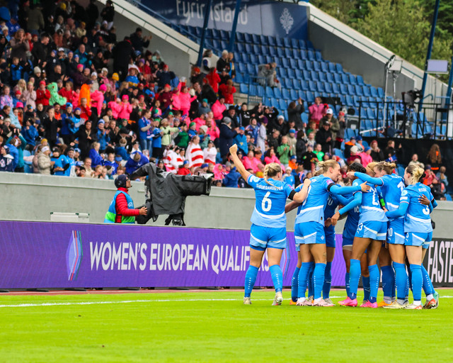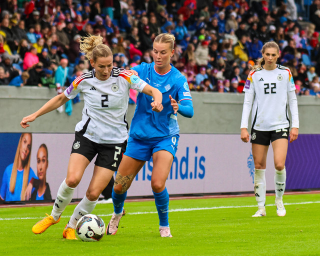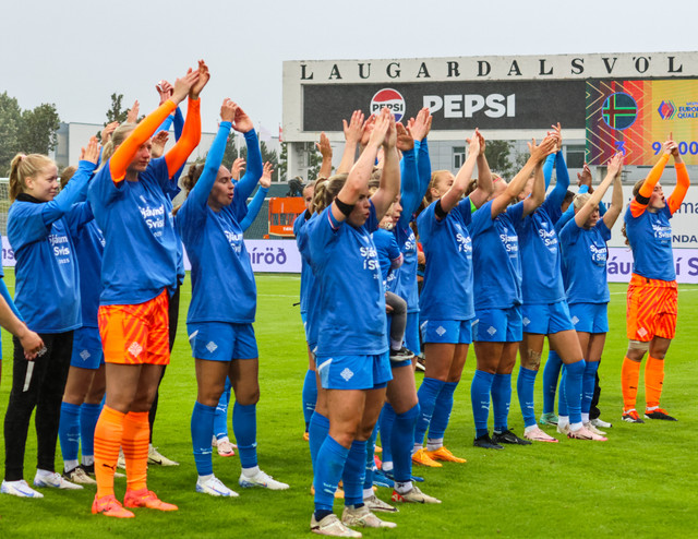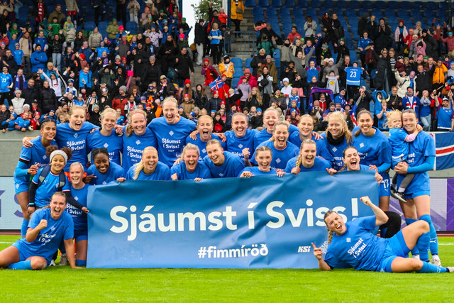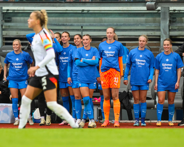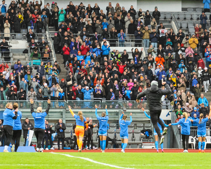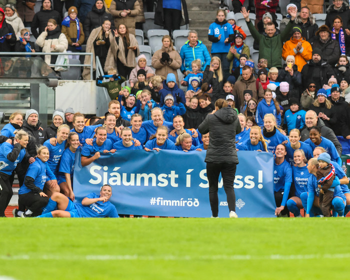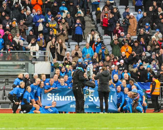 Ísland vann 3 - 0 sigur á Þýskalandi á Laugardalsvelli í gær og leikur því á Evrópumótinu í Sviss næsta sumar. Hér að neðan er myndaveisla Hauks Gunnarssonar.