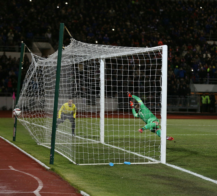 Gylfi Þór Sigurðsson kom íslenska liðinu yfir úr vítaspyrnu sem Jasper Cillessen kom engum vörnum við áður en Gylfi bætti við öðru marki eftir hornspyrnu.