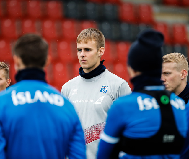 Arnar Þór Viðarsson landsliðsþjálfari stillir fram sterku liði. Elías Rafn Ólafsson fær tækifæri í markinu en Patrik Sigurður Gunnarsson hefur spilað alla leikina hingað til. Willum Þór Willumsson er meðal varamanna.