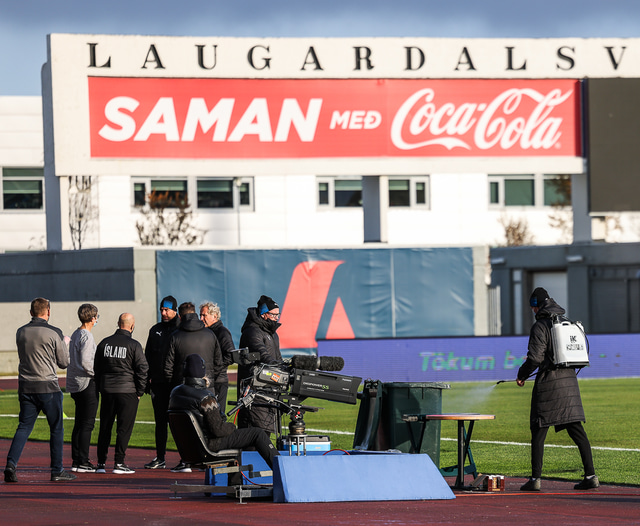 Andrúmsloftið fyrir æfingu íslenska landsliðsins á Laugardalsvelli var sérstakt og Hafliði Breiðfjörð, ljósmyndari Fótbolta.net, skynjaði að eitthvað væri í gangi.