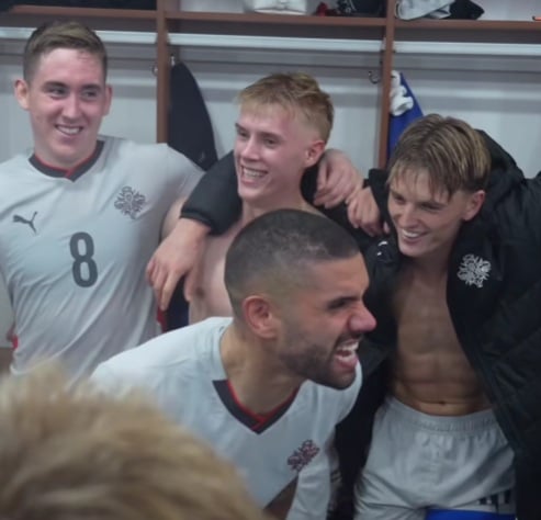 Strákarnir okkar gáfu sér smá tíma til að fagna en nú er strax hafinn undirbúningur fyrir leikinn gegn Úkraínu sem fram fer í Póllandi á sunnudaginn.