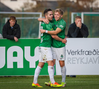 Gísli Eyjólfsson skoraði markið en fékk sitt annað gula spjald seint í leiknum og verður því ekki með á morgun.
