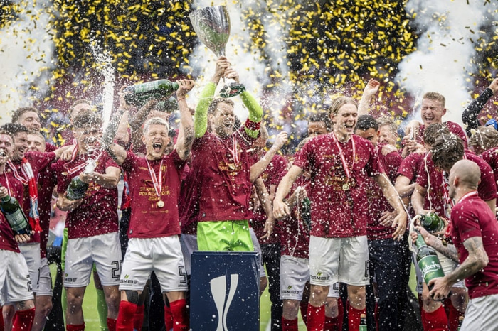 „Við höfum verið á mikilli uppsiglingu síðustu þrjú árin. Við byrjum á því að fara upp um deild, á fyrsta tímabili í Superliga vinnum við bronsið og erum tímabilið eftir það í riðlakeppni Sambandsdeildarinnar. Svo núna í ár verðum við bikarmeistarar. Það er alltaf eitthvað skref upp á við. Það er sama hjá stuðningsmönnunum, hópurinn með hörðustu stuðningsmönnunum hefur stækkað rosalega mikið. Auðvitað spilar líka inn í að við vorum að spila á móti AGF. Að vinna þá var mjög sætt."