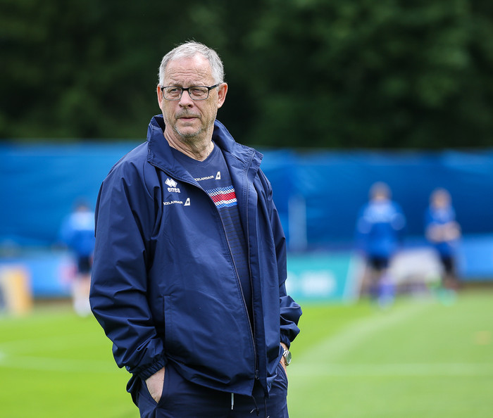 Við kíktum á stuðið og hittum meðal annars frændfólk Lars Lagerback sem var kyrfilega merkt Íslandi!