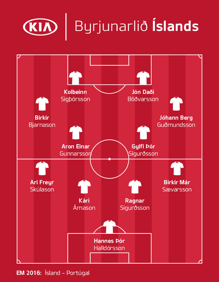 Byrjunarlið Íslands er komið en mesta umræðan hefur verið um hvaða sóknarlínu Ísland myndi nota í leiknum. Lars Lagerback og Heimir ákvaðu að breyta sem minnstu frá undankeppninni og notast við Kolbein Sigþórsson og Jón Daða Böðvarsson.