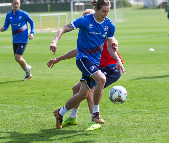Þetta verður jafn leikur sem endar með að Aron Bjarna köttar í 43 skiptið á hægri og hleður í tvö í uppbótartíma.