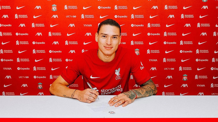 Nunez kemur til Liverpool frá Benfica í Portúgal þar sem hann skoraði 34 mörk í 41 keppnisleik á síðustu leiktíð.