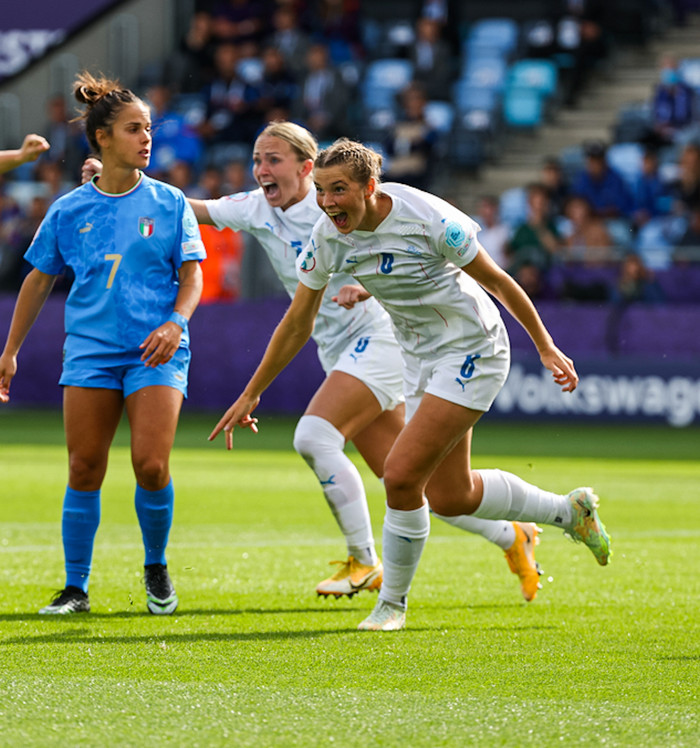 „Þetta er erfitt. Mér fannst við geta stolið þessu í lokin,“ sagði Karólína Lea Vilhjálmsdóttir, markaskorari Íslands, eftir 1-1 jafntefli gegn Ítalíu á EM.