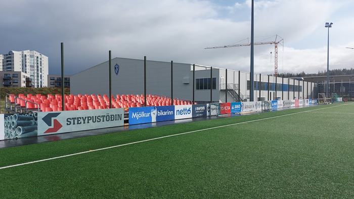Engin aðstaða var fyrir áhorfendur en nú hefur ÍR sett up bráðabirgðastúku eins og sjá má á myndinni við fréttina.