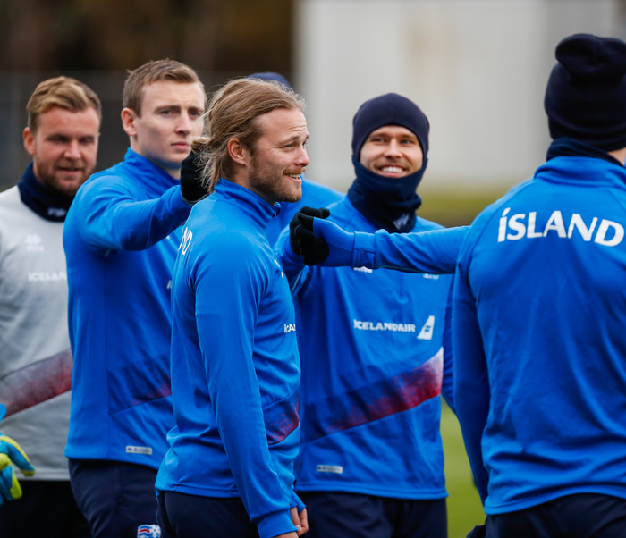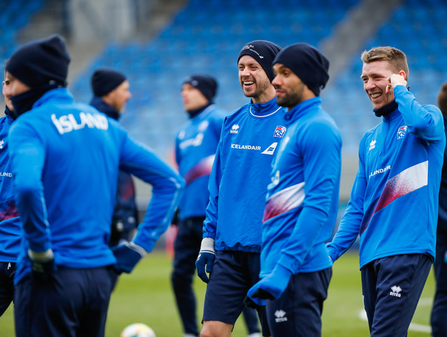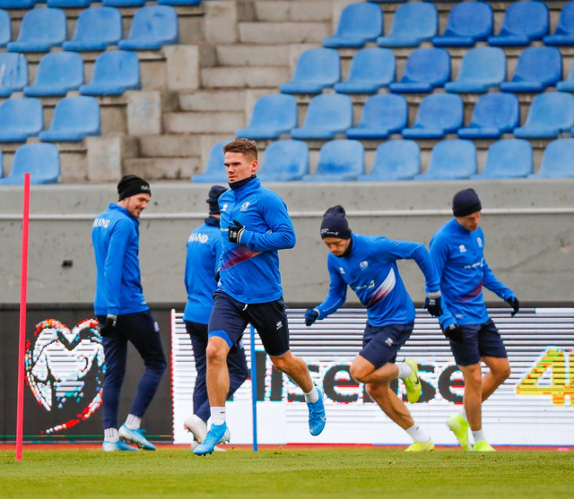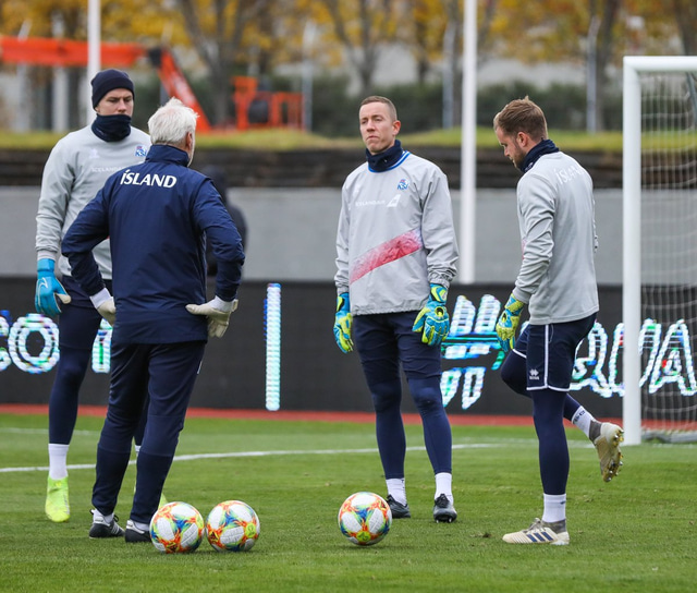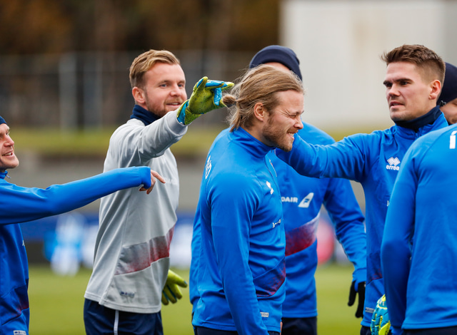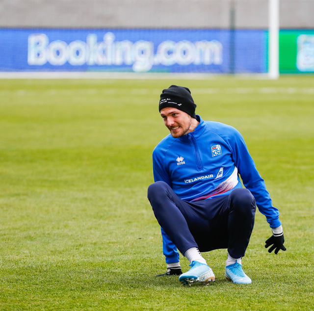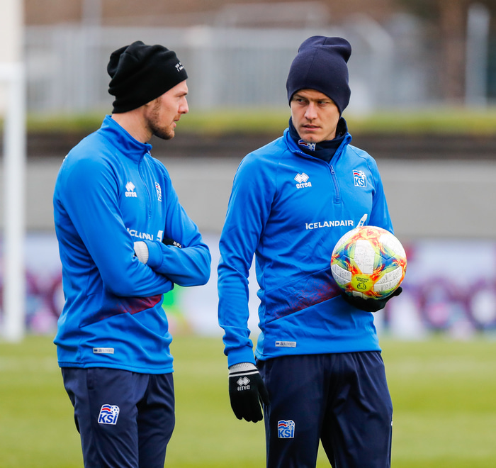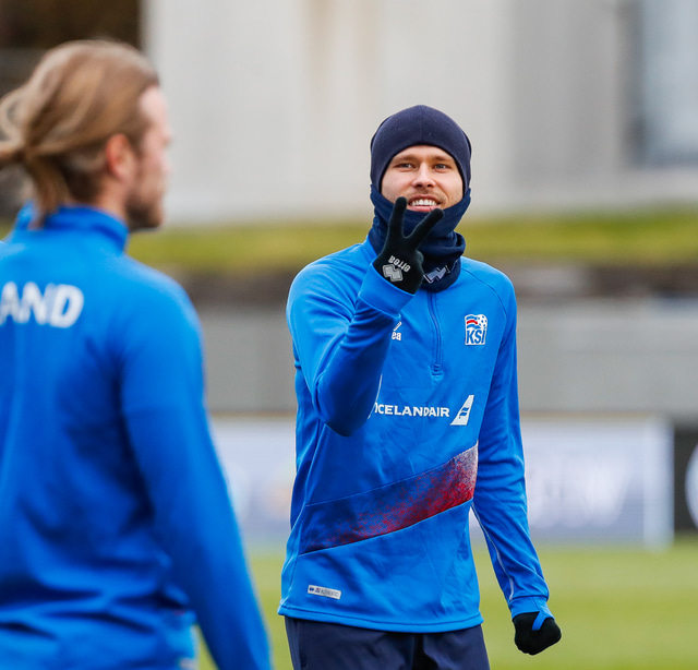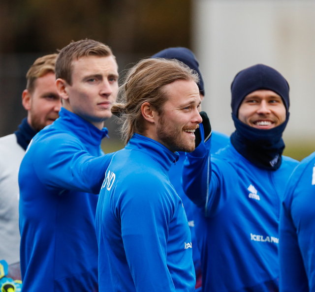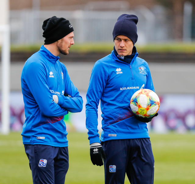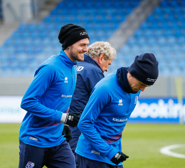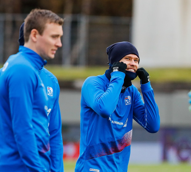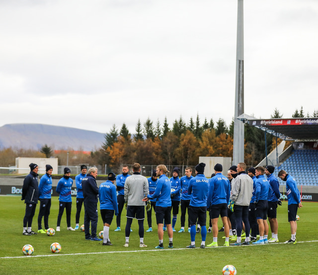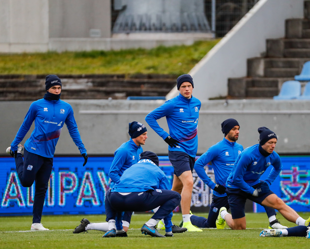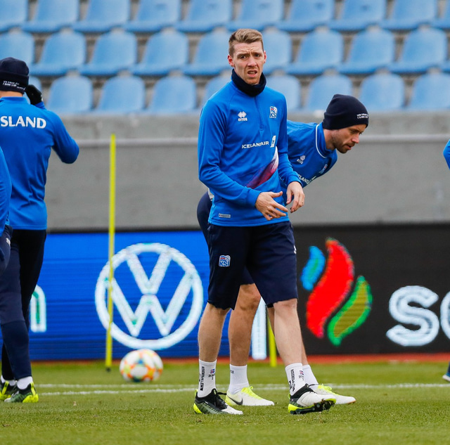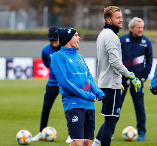 Ísland og Andorra mætast í undankeppni EM 2020 á Laugardalsvelli í kvöld. Hér að neðan er myndaveisla frá æfingu Íslands í gærmorgun.