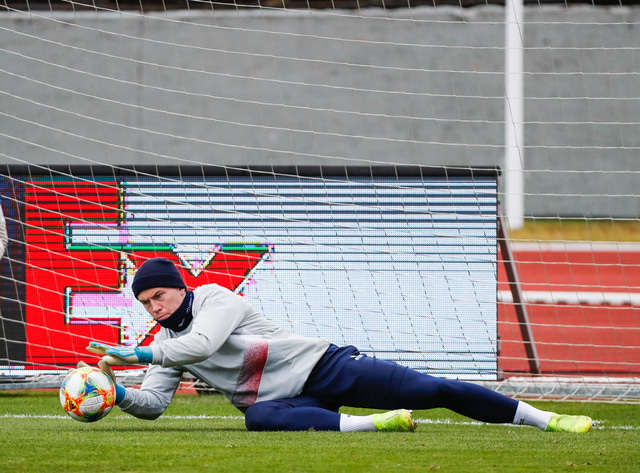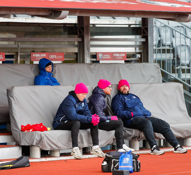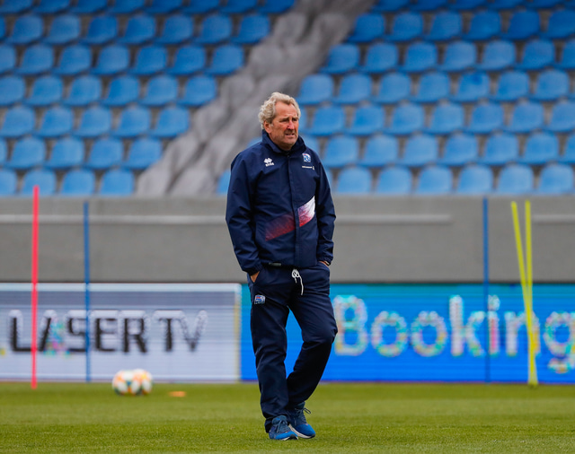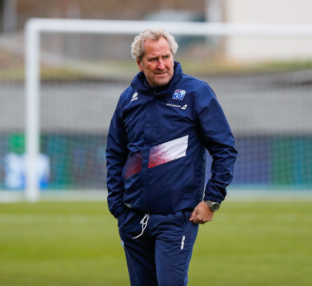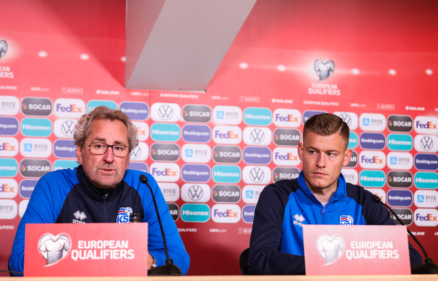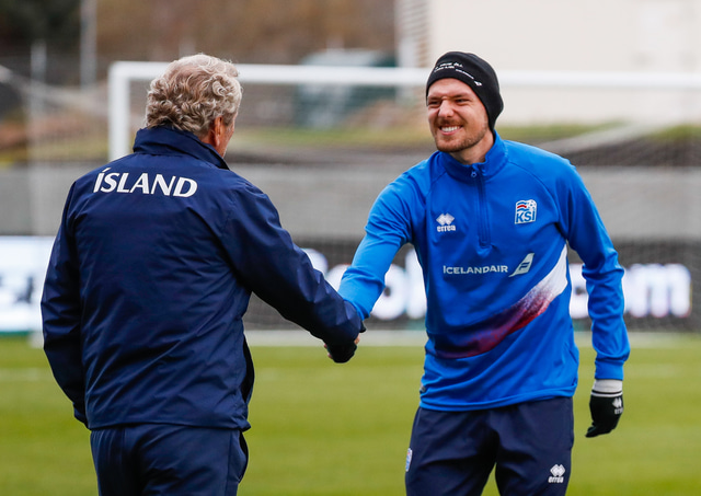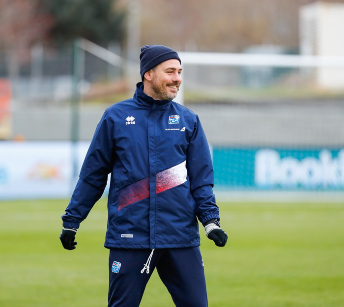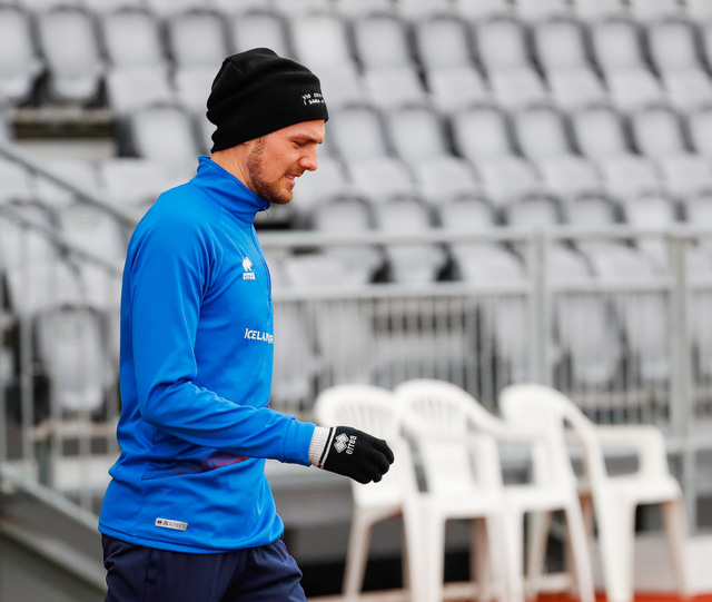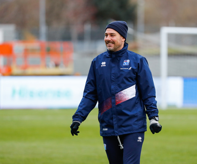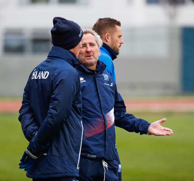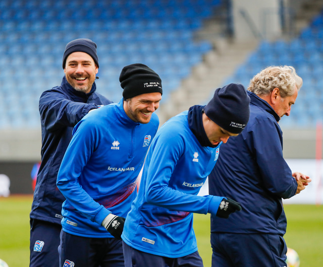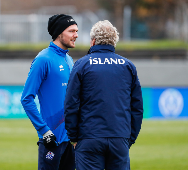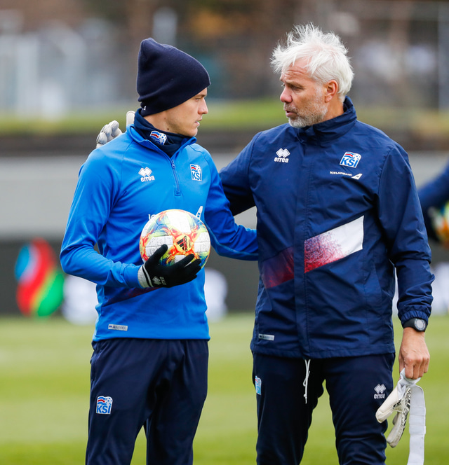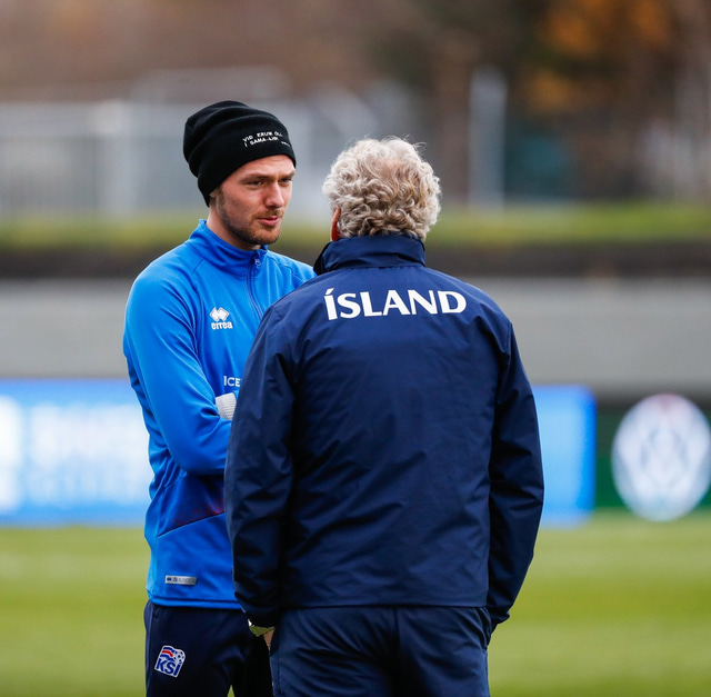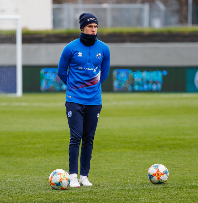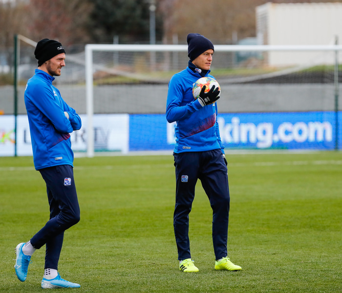 Ísland og Andorra mætast í undankeppni EM 2020 á Laugardalsvelli í kvöld. Hér að neðan er myndaveisla frá æfingu Íslands í gærmorgun.