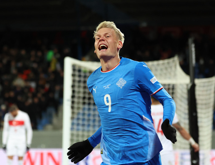 Fjórum mínútum síðar fengu gestirnir aðra vítaspyrnu er Andri Lucas Guðjohnsen fékk boltann í hönd sína eftir skalla Merih Demiral eftir hornspyrnu. Dómurinn þótti fremur grimmur, en í annað sinn tók pólski dómarinn sér aðeins nokkrar sekúndur til að skoða VAR-skjáinn og dæmdi víti.