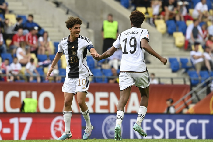 Þýskaland lenti undir í fyrri hálfleik í Norður-Írlandi en sneri stöðunni við í seinni hálfleik með mörkum frá Assan Ouedraogo og Dzenan Pejcinovic, leikmönnum RB Leipzig og Wolfsburg. Þjóðverjar töpuðu gegn Grikkjum í síðustu umferð og eru því með sex stig eftir þrjá leiki.