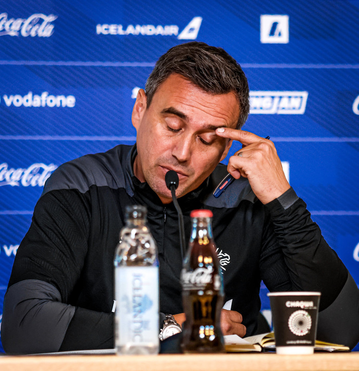 „Nei, þetta er bara ekki satt. Ég hef ekki lent í neinu rifrildi við Albert. Við höfum rætt hlutina, ég og Albert. Hann er mjög faglegur og við höfum átt nokkra fundi og talað saman í þessum glugga. Ég veit að þetta er mjög erfitt fyrir hann og það er eðlilegt að hann sé ekki sáttur. En okkur lenti ekkert saman," sagði Arnar þá. Svo fóru menn heim. Albert Brynjar Ingason, frændi Alberts, tjáði sig um málið í Dr Football hlaðvarpinu eftir leikinn á móti Ísrael og sagði að það væri augljóslega eitthvað í gangi á bak við tjöldin.