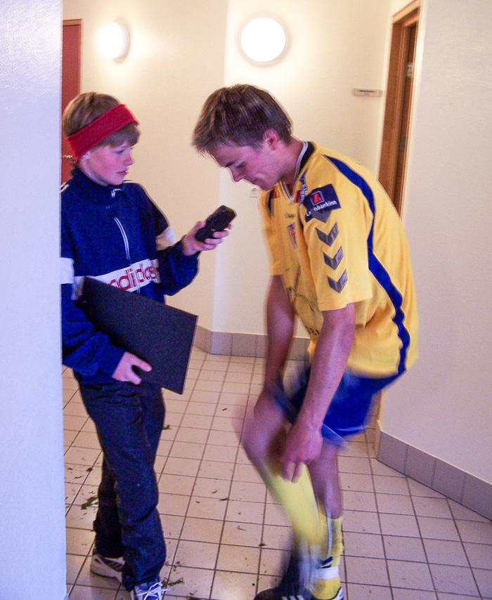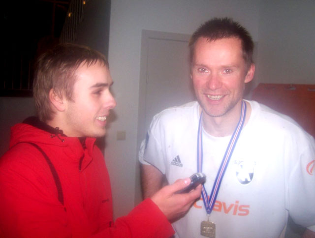 Ómar Vilhelmsson er svona altmulight gæinn á Fótbolta.net. Hér tekur hann viðtal við Heimi Guðjónsson Íslandsmeistara með FH árið 2004. Hann myndaði þennan leik líka en hefur líka séð um auglýsingamál, viðburðastjórnun og nánast allt sem tengist vefnum.