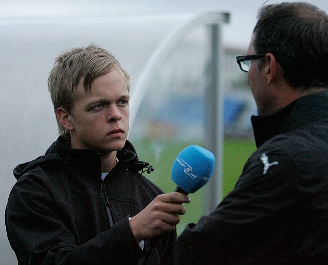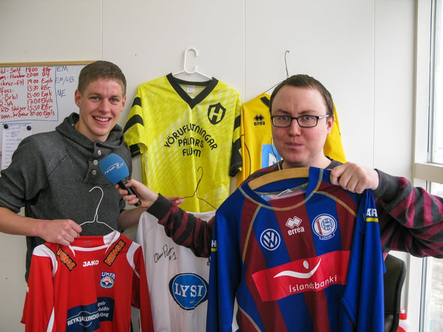 Arnar Daði Arnarsson byrjaði 12 ára að vinna við Fótbolta.net.Hér er hann 18 ára að taka viðtal við Willum Þór Þórsson árið 2010.