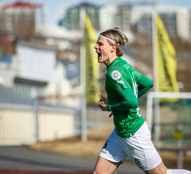„Ekkert sem kom á óvart þar, spilaði vel á undirbúningstímabilinu og skoraði mörk. Hann er mjög ferskur á æfingum og skorar mikið, er með rosalegan hægri fót. Mjög verðskuldað, hann er búinn að leggja hart að sér og átti þetta skilið," sagði Halldór Árnason, þjálfari Breiðabliks, um markið hjá Degi.
