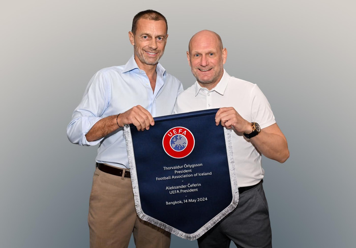 Þorvaldur Örlygsson formaður KSÍ átti í vikunni fund með Aleksander Ceferin forseta UEFA í Bangkok, Taílandi, þar sem ársþing FIFA fer fram. pic.twitter.com/K0JK105p9N