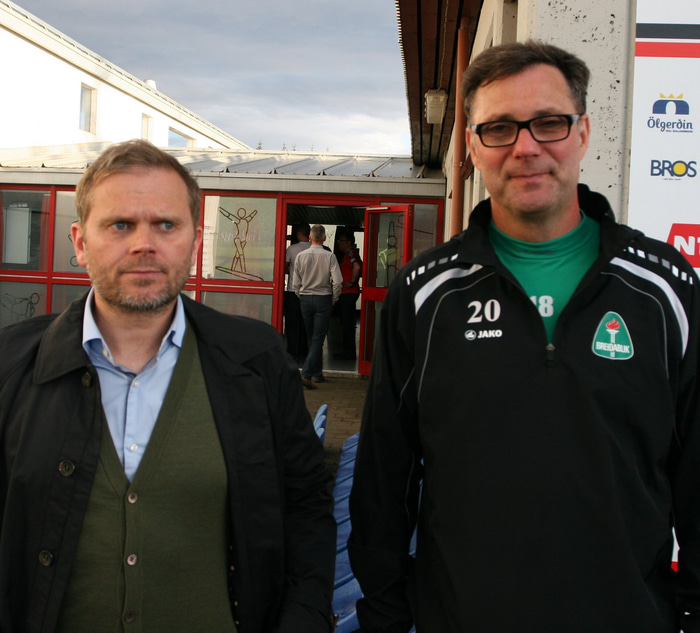Aliþngismaðurinn Willum Þór Þórsson er aðstoðarmaður Guðmundar með liðið og var í fyrsta sinn á bekknum með honum í Árbænum. Willum hefur verið aðalþjálfari í fjölda ára en fær nú að reyna sig sem aðstoðarmaður.