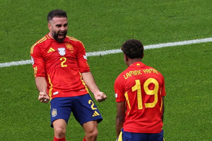 Næsta mark leiksins leit dagsins ljós fyrir leikhlé eftir mikinn sóknarþunga Króatíu, en markið kom þvert gegn gangi leiksins þegar Dani Carvajal skoraði eftir fyrirgjöf frá hinum 16 ára gamla Lamine Yamal í kjölfar hornspyrnu.