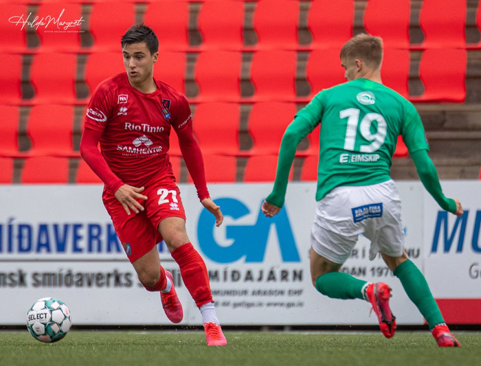 Heimamenn settu tóninn strax á þriðju mínútu leiksins þegar Kristján Páll Jónsson skoraði.