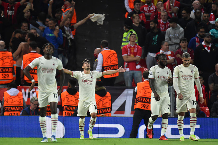 Liverpool var áfram með tögl og haldir á leiknum þangað til AC Milan á 42. mínútu. Ante Rebic skoraði markið. Stuttu eftir það skoraði Brahim Diaz og kom Milan í 2-1.