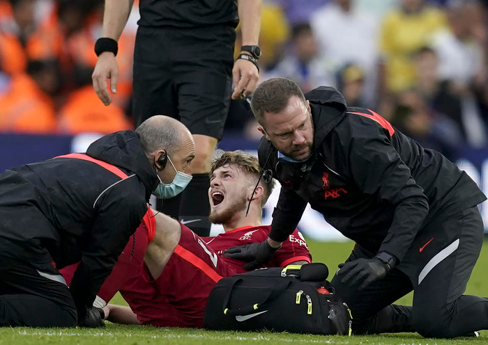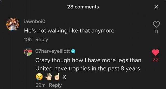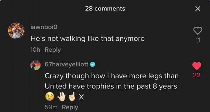 „Hann labbar ekki svona lengur," skrifaði stuðningsmaður Manchester United við TikTok myndband af Harvey Elliott, átján ára leikmanni Liverpool sem meiddist illa á ökkla í leik gegn Leeds United um helgina.