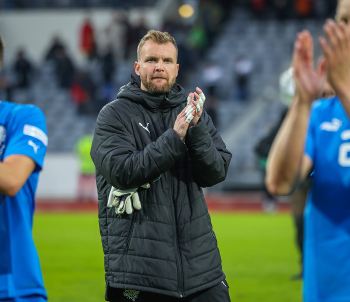„Nei, í rauninni ekki - ég hef ekki pælt í því í raunninni. Ef það kemur þá bara kemur það. Það var svekkjandi síðast, ég handarbrotnaði í síðasta verkefni. Við eigum fullt af frábærum markmönnum sem eru að spila í Evrópu þannig ég er ekkert að búast við því (kallinu). Ef þeir þurfa mig þá er ég klár í það."