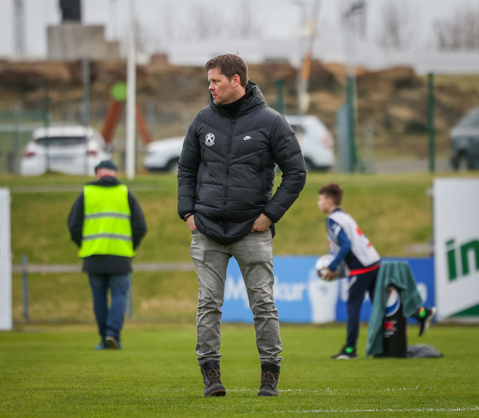 „Það var ofboðslega erfitt að spila boltanum, það var mjög hvasst. Þetta er mesta hvassvirði síðan ég kom hingað að þjálfa. Það var erfitt að hafa heimil á boltanum, vindurinn tók hann mikið og það var alltaf erfitt að spila á móti honum. Það var margt gott í fyrri hálfleik og margt ekki svo gott í seinni hálfleik sem við þurfum að læra af."