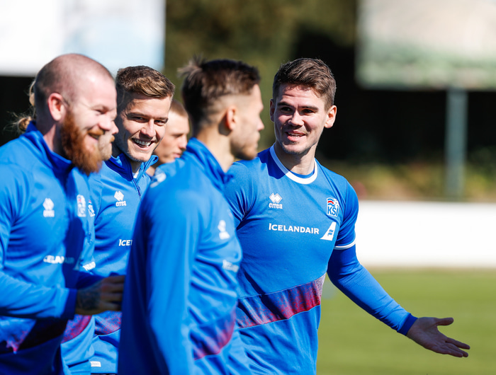 Viðar Örn Kjartansson skoraði mark Íslands í 2-1 tapi gegn Danmörku á Parken í kvöld. Hann jafnaði metin á 85. mínútu en Danir skoruðu sigurmark sitt úr vítaspyrnu í uppbótartíma.