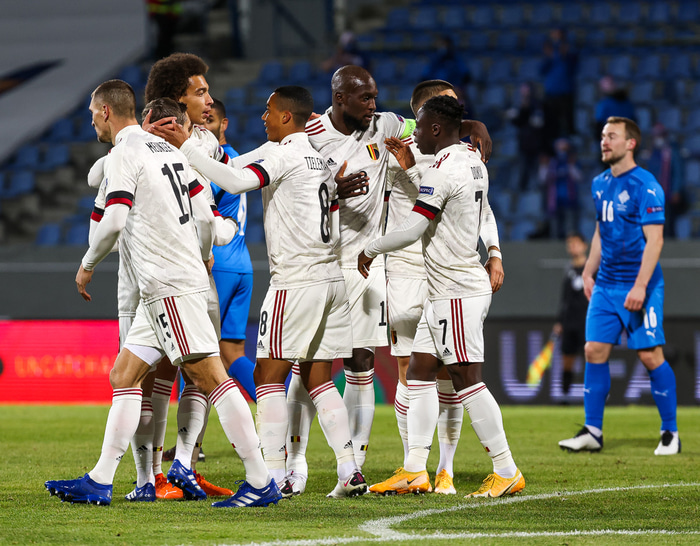 Youri Tielemans og Dries Mertens skoruðu mörk Belgíu í 2-0 sigri þeirra. Belgía er á toppi riðilsins með 12 stig, Danmörk með tíu stig og England sjö stig. Ísland er án stiga. Belgía og Danmörk eigast við í úrslitaleik um sigur í riðlinum í vikunni, á meðan við Íslendingar mætum Englandi á Wembley.