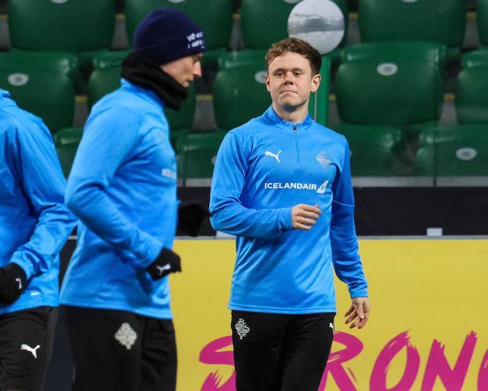 Eggert Aron Guðmundsson var kallaður inn í leikmannahóp A-landsliðsins fyrir leikinn gegn Úkraínu í Varsjá annað kvöld. Arnar Gunnlaugsson segir góða stemningu í hópnum, ekki síst vegna innkomu Eggerts.