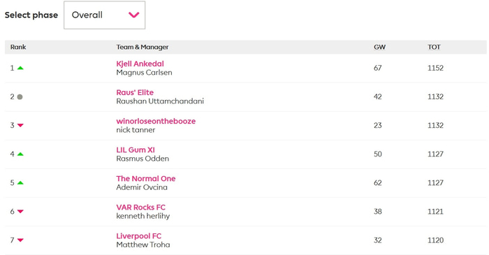 Sagt var frá því um síðustu helgi að norski stórmeistarinn í skák, Magnus Carlsen, væri einn af efstu mönnum í heimi í hinum vinsæla leik Fantasy Premier League.