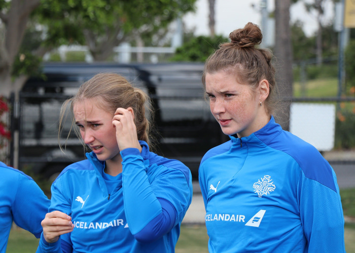 Fyrstu tveir leikir mótsins fara fram í Los Angeles. Landsliðskonurnar eru miklar keppnismanneskjur og setti Karólína Lea Vilhjálmsdóttir spurningarmerki við hvernig Hallbera Guðný Gísladóttir hefði framkvæmt eina af æfingunum.
